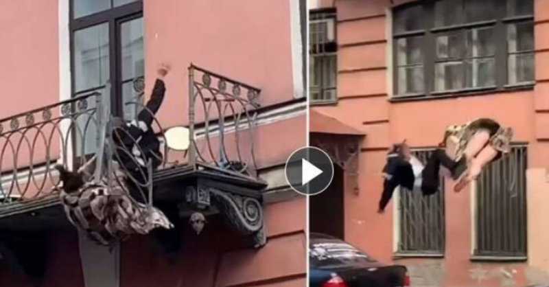 Couple falls 25 feet from balcony while fighting, terrifying moment captured on camera