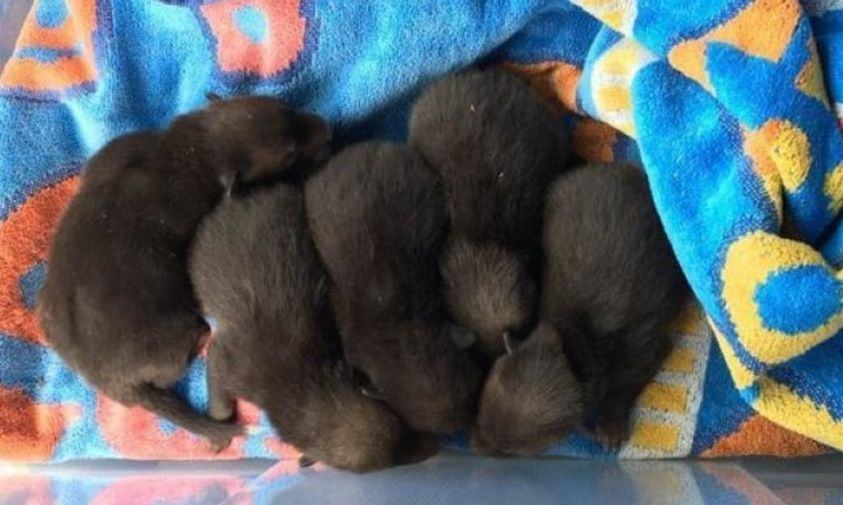When he lifted up the old mattress to clean the garden, he discovered five little animals