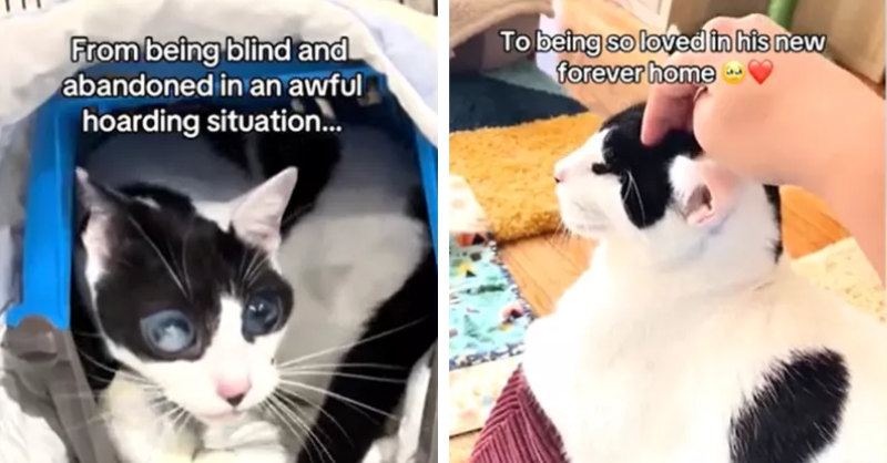 Blind Cat rescued from ‘Awful Hoarding Situation’ finds forever home