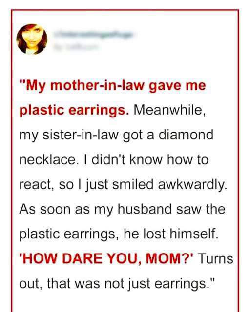 I Can’t Believe My Mother-In-Law Gave Me Plastic Earrings, But Gave My Sister-In-Law Diamond Necklace