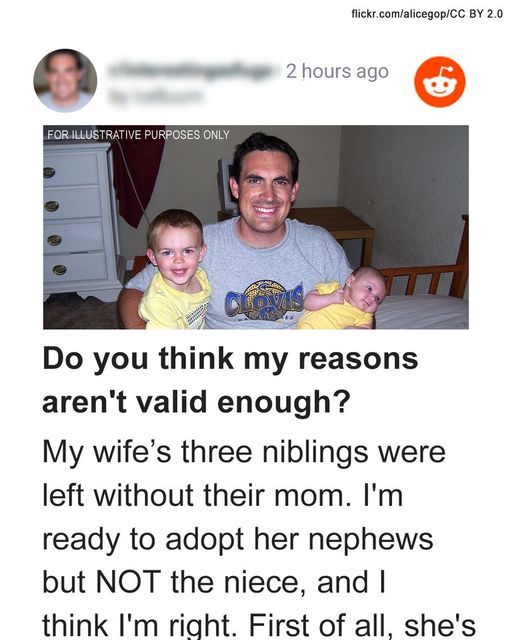 MAN ACCEPTED ADOPTING THE NEPHEWS OF HIS WIFE, BUT NOT HER NIECE